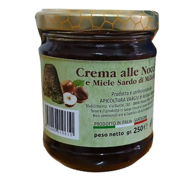 Il miglior miele di millefiori di nostra produzione, unito alla Crema di Nocciole IGP, creando un mix perfetto da abbinare a del latte caldo, al caffe al gelato, al pane, naturale e senza aggiunta di prodotti chimici, soltanto il nostro miele unito alla Crema di Nocciole IGP. Vasetto da 250 gr.