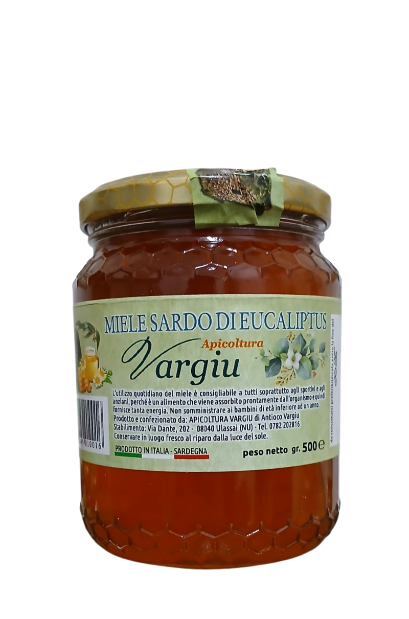 Il Miele di Eucalipto dell’Apicoltura Vargiu è prodotto artigianalmente nelle campagne incontaminate della Sardegna, un territorio ricco di vegetazione mediterranea e famoso per la purezza dell’aria. Le api raccolgono il nettare dai fiori di eucalipto selvatici, conferendo a questo miele un carattere unico e genuino. La lavorazione segue metodi tradizionali, senza l’uso di additivi o trattamenti artificiali, garantendo un prodotto 100% naturale e di alta qualità. Il Miele di Eucalipto dell’Ogliastra si presenta con un colore ambrato intenso, che può variare dal marrone chiaro al marrone scuro, a seconda delle fioriture stagionali. La sua consistenza densa e cremosa lo rende facilmente spalmabile, mantenendo un gusto persistente e aromatico al palato. La cristallizzazione naturale è un segno di autenticità e qualità, confermando l’assenza di trattamenti artificiali e l’origine 100% naturale. Vasetto da 500 gr.